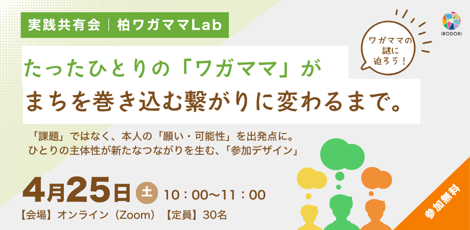 【4/25開催】たったひとりの「ワガママ」が、まちを巻き込む繋がりに変わるまで |「ワガママ」からはじまる参加デザイン